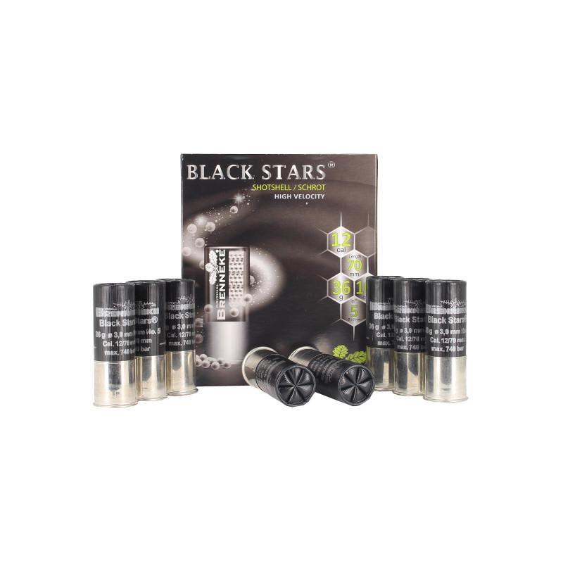Les cartouches Brenneke Black Stars Shotshell en calibre 12/70 sont chargées de plombs n°5 de 3 mm, avec une charge de 36 grammes. Fiables et performantes, elles sont conçues pour offrir une gerbe régulière et une efficacité constante à chaque tir.